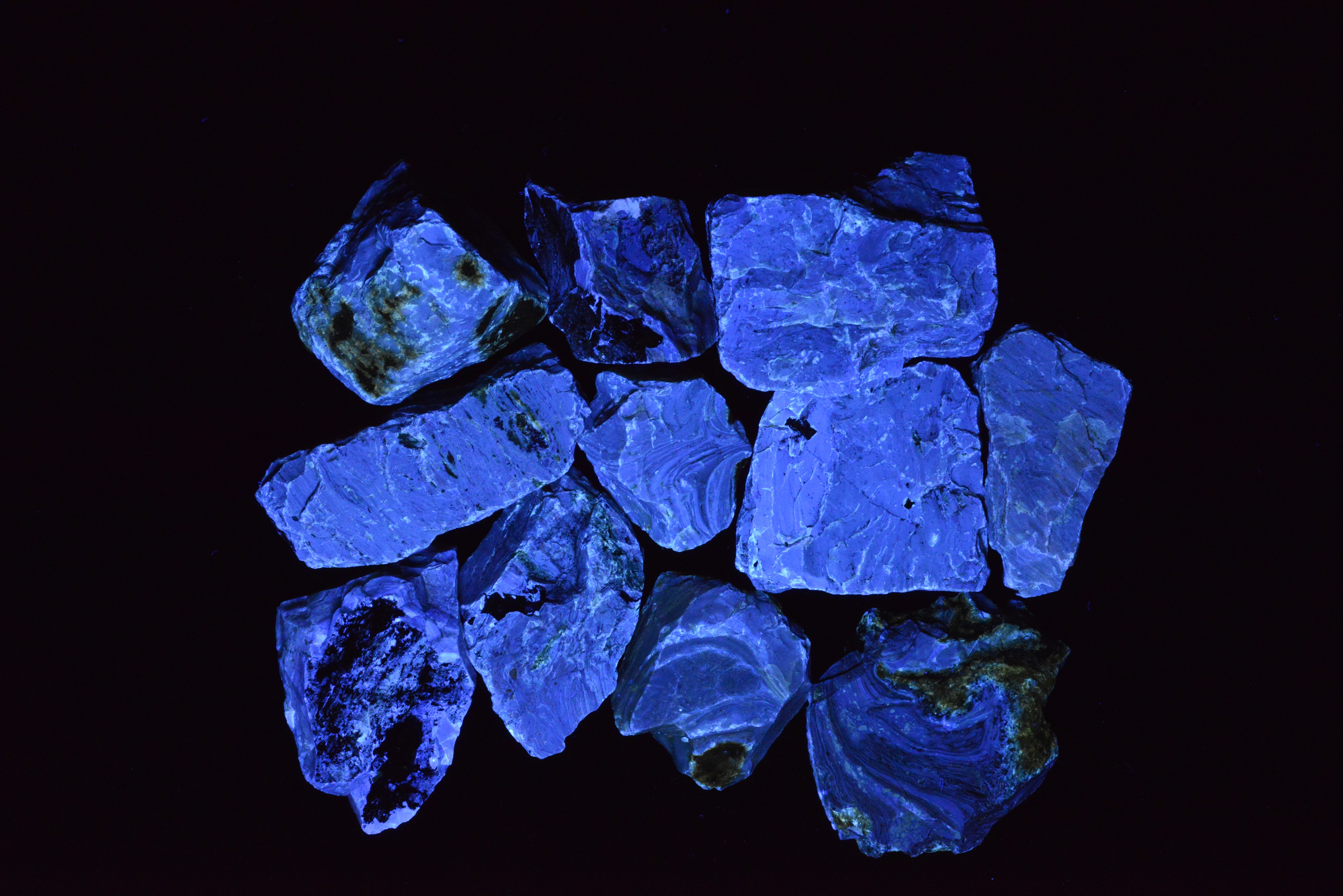 ブルーアンバーと呼ばれる、紫外線ライトで美しく蛍光する琥珀